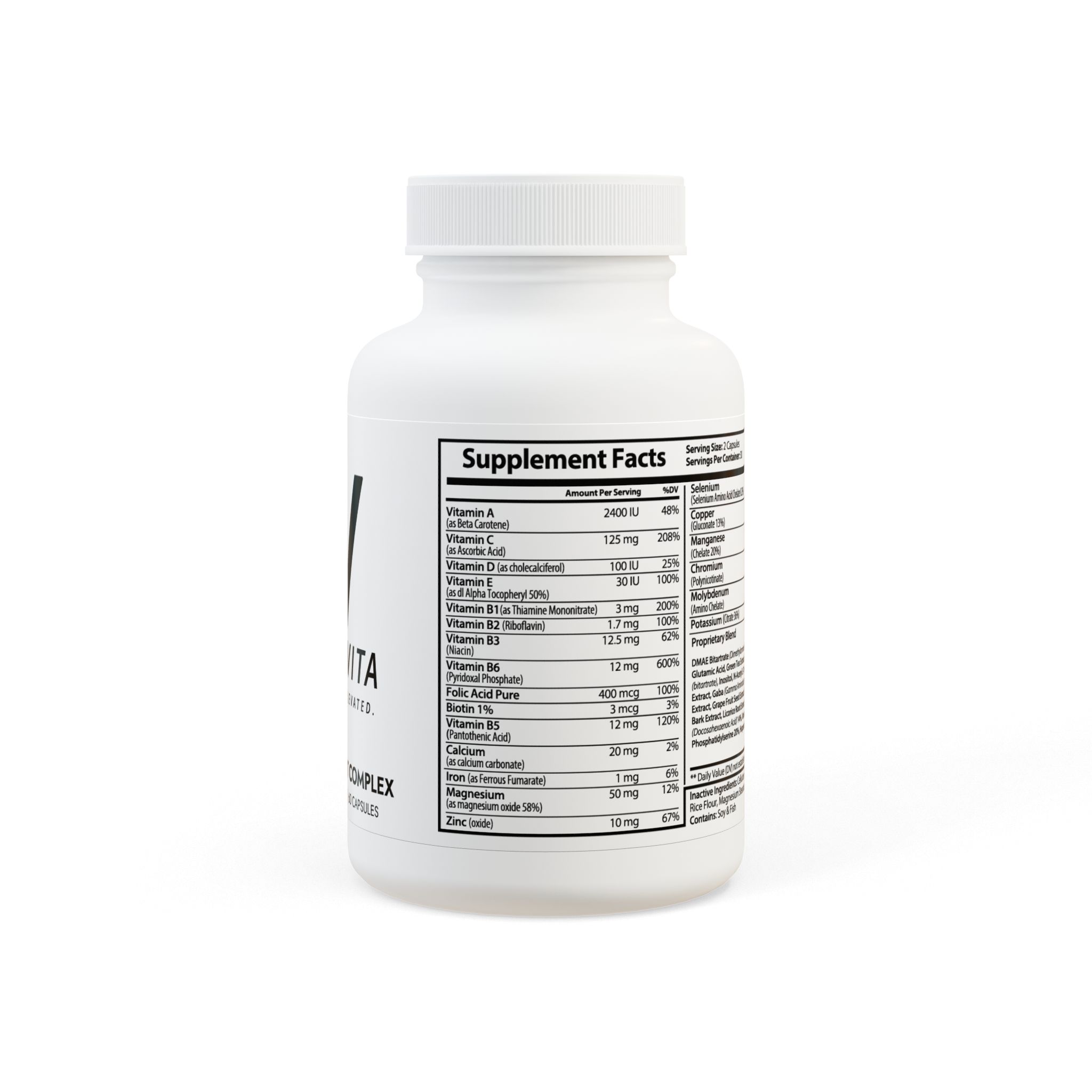 Ingredients: Vitamin A (as Beta Carotene), Vitamin C (as Ascorbic Acid), Vitamin D (as cholecalciferol), Vitamin E (as dl Alpha Tocopheryl 50%), Vitamin B1(as Thiamine Mononitrate), Vitamin B2 (Riboavin), Vitamin B3 (Niacin), Vitamin B6 (Pyridoxal Phosphate), Folic Acid Pure, Biotin, Vitamin B5 (Pantothenic Acid), Calcium (as calcium carbonate), Iron (as Ferrous Fumarate), Magnesium (as magnesium oxide 58%), Zinc (oxide), Selenium (Selenium Amino Acid Chelate 0.2%), Copper (Gluconate 13%), Manganese (Chelate 20%), Chromium (Polynicotinate), Molybdenum (Amino Chelate), Potassium (Citrate 36%), DMAE Bitartrate (Dimethylaminoethanol), L Glutamine, Glutamic Acid, Green Tea Extract, Bacopa Extract, Choline (bitartrate), Inositol, N-Acetyl L-Tyrosine, Bilberry Fruit Extract, Gaba (Gamma Aminobutyric Acid), Grape Seed Extract, Grape Fruit Seed Extract, Olive Leaf, Cinnamon Bark Extract, Licorice Root Extract, Boron (Citrate), DHA (Docosahexaenoic Acid) 14%, Vanadyl Sulfate 19%, Phosphatidylserine 20%, Huperzine A. Inactive Ingredients: Cellulose (Vegetable Capsule), Rice Flour, Magnesium Stearate, Silicon Dioxide. Contains: Soy & Fish